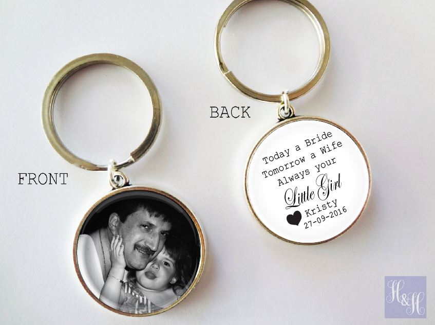 "Today a Bride, Tomorrow a Wife, Always Your Little Girl" personalised with your name, wedding date and YOUR PHOTO on the other side