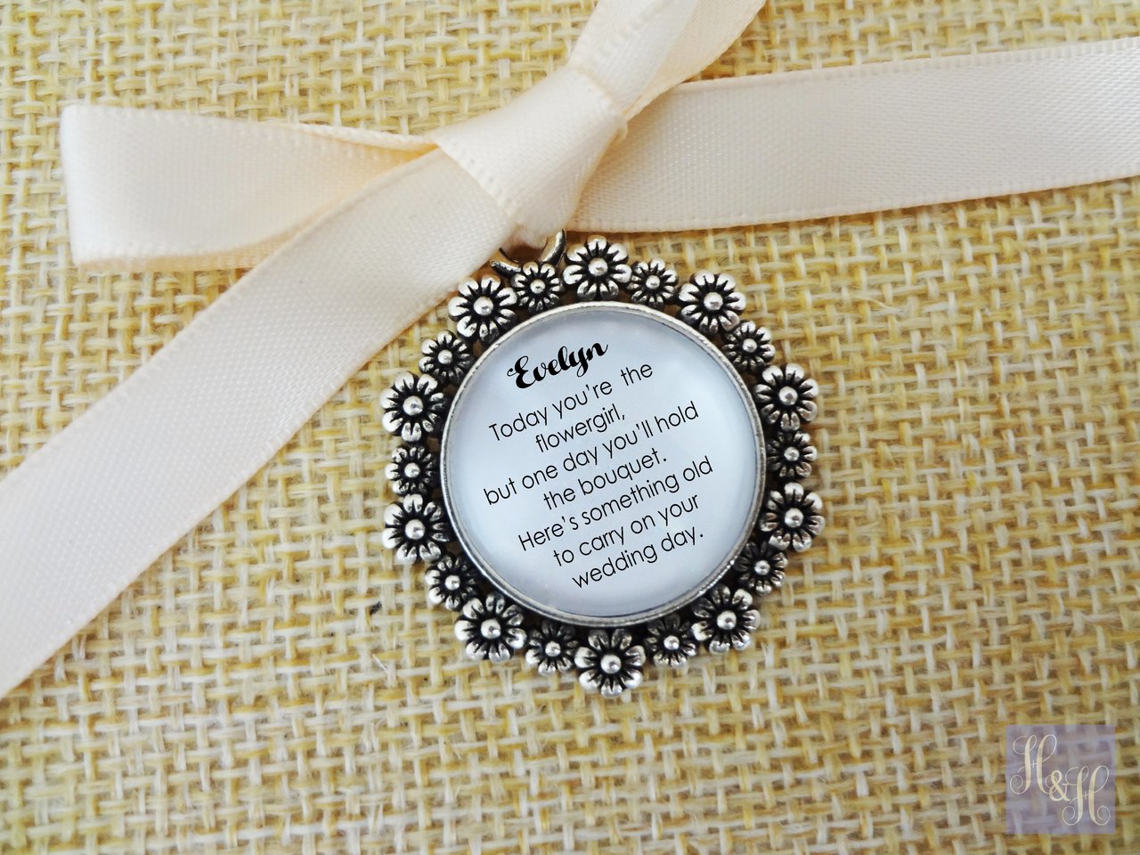 An adorable pendant your flower girl or bridesmaid can cherish as a keepsake from your special day and also carry on her wedding day as a momento of something old.